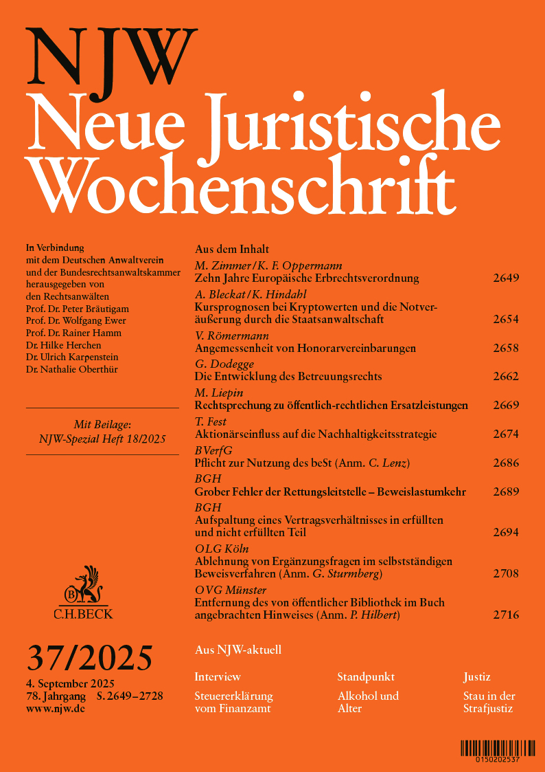 | Der Einfluss der Aktionäre auf die Nachhaltigkeitsstrategie NJW 2025, Seite 2674 ff. |